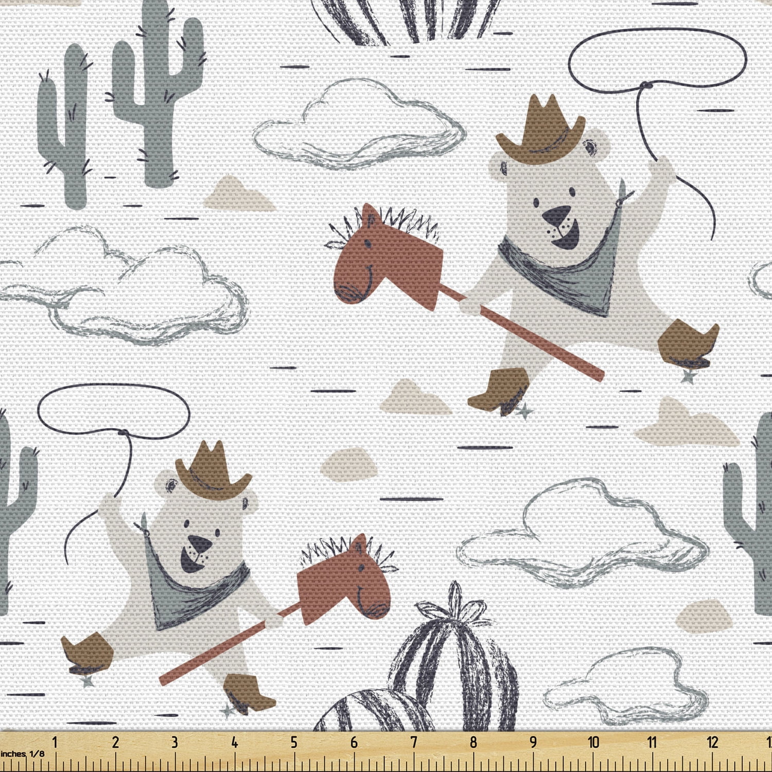 Cartoon Fabric By The Yard Wild West Pattern With Cowboy Bear Cacti Upholstery Fabric For Dining Chairs Home Decor Accents Tan Blue Violet By Ambesonne Walmart Com